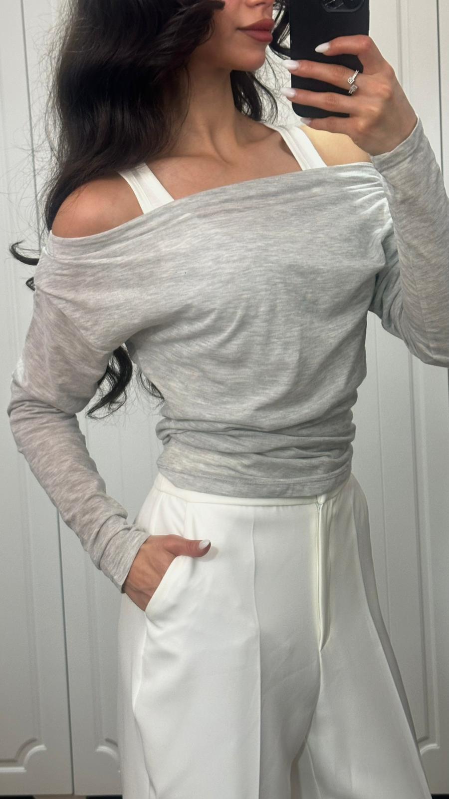 Günlük stilinize dinamik bir dokunuş katan bu düşük omuzlu melanj bluz, asimetrik yaka kesimi ve omuz dekoltesiyle modern bir duruş sergiliyor. Melanj dokusunun verdiği doğal görünüm, Fale Giyim’in konfor odaklı tasarım anlayışıyla birleşerek gardırobunuzun vazgeçilmezi oluyor.